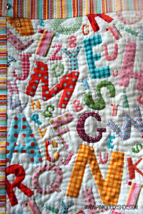 Both quilts are gorgeous. I LOVE the alphabet quilt!! So colorful!
