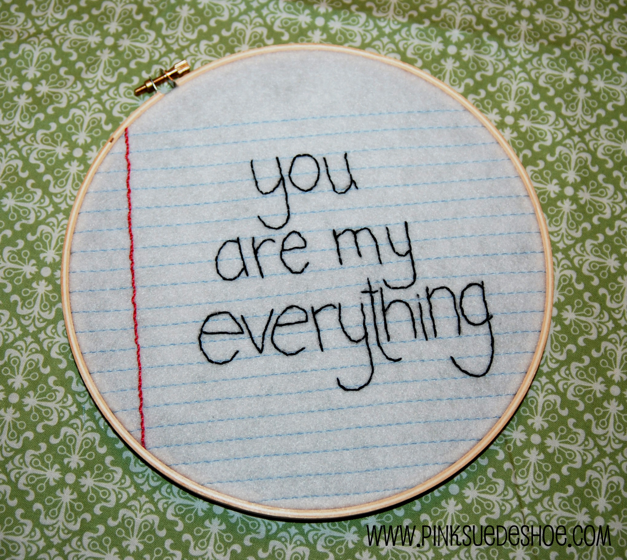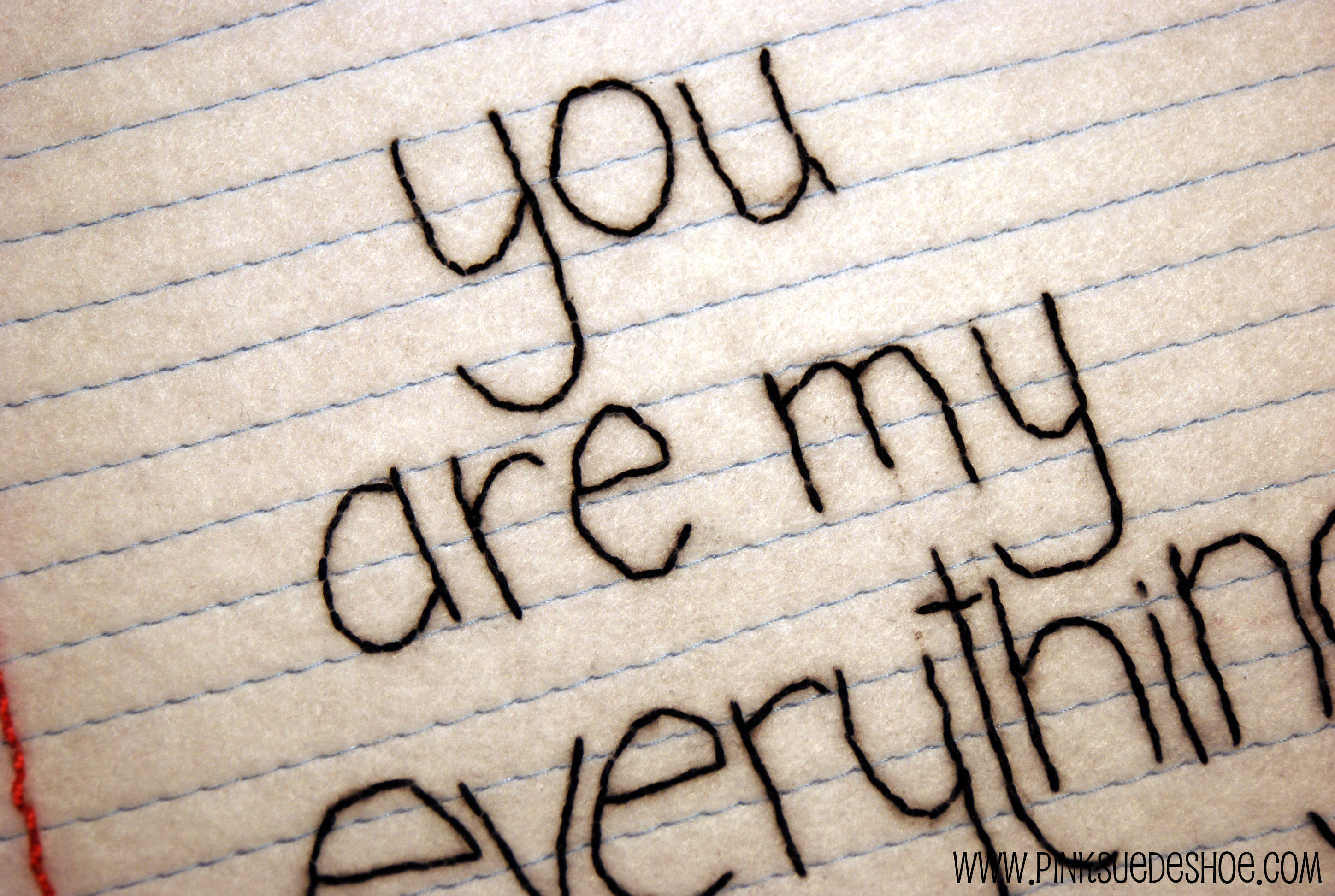 This is hands down the cutest embroidery I’ve ever seen. So simple and sweet! I LOVE the notebook paper. I’m definitely stealing this idea when I’m done with a few of my current projects!