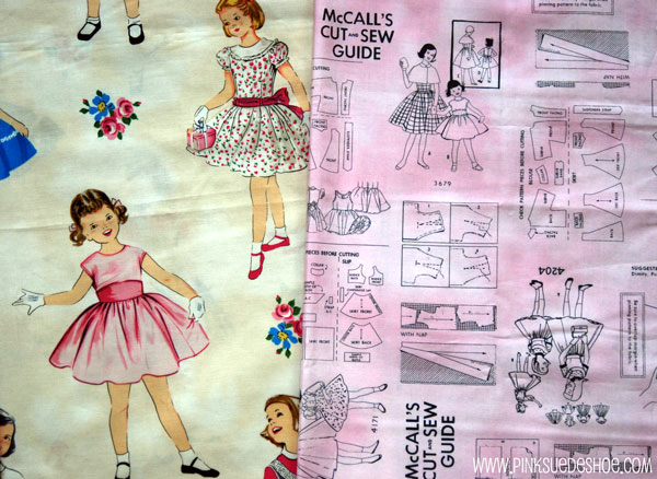 First up is two fat quarters printed with images from vintage 1950’s children’s patterns.  My mom had some dresses when she was a little girl that looked just like these!