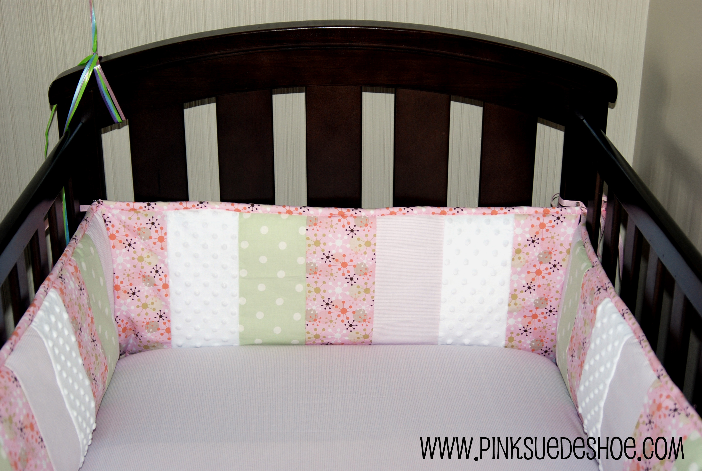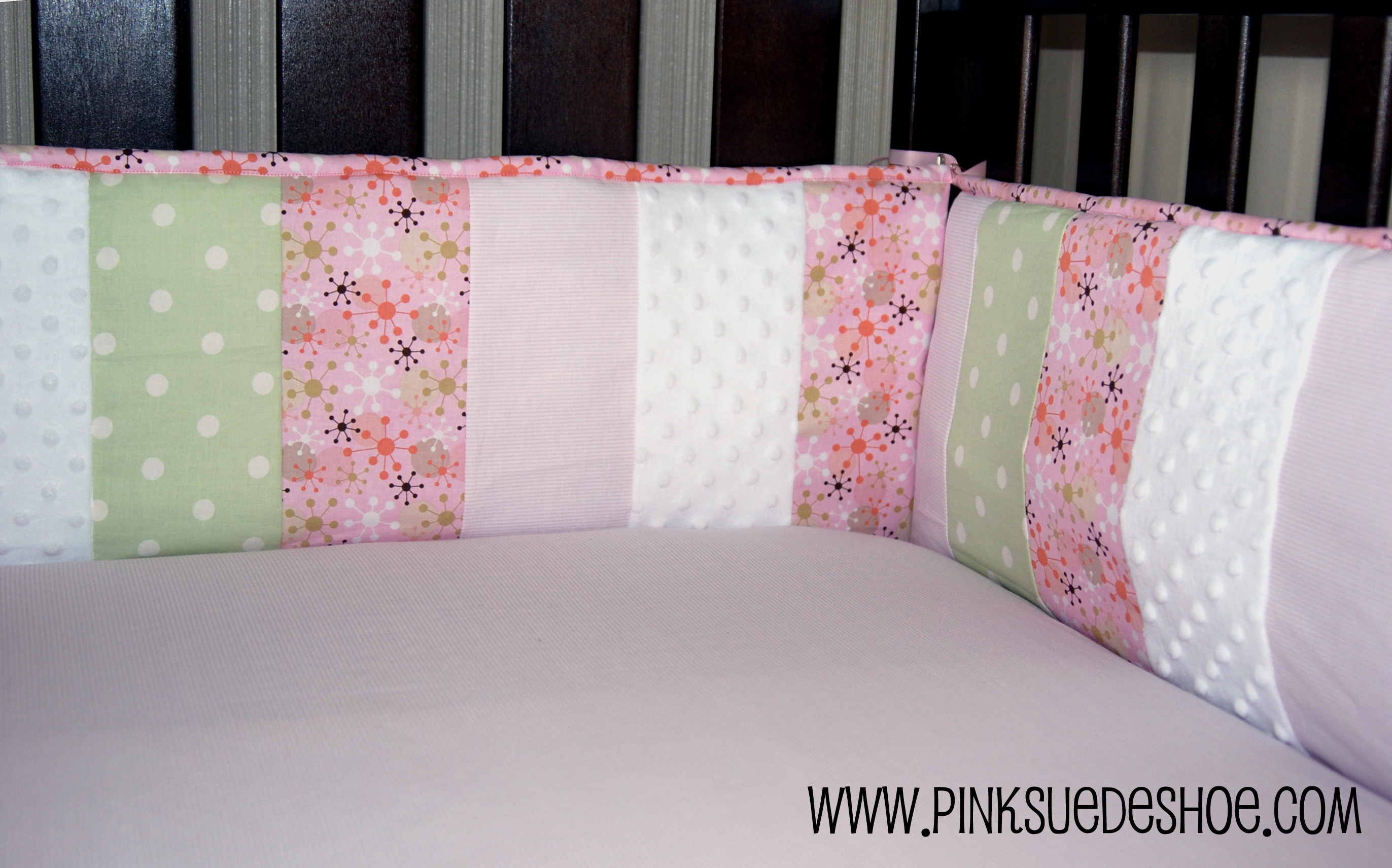 The minky in the bumper pads are a great addition. Very pretty!