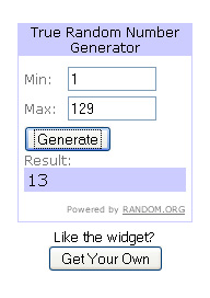 OK, time for a winner. (Boring Admin stuff, feel free to skip: If you are looking close you’ll notice that there are 136 comments listed on the post. But I only used 129 to generate the winning number. My blog host counts all the times I linked to my giveaway in my own posts as comments and tacks them on the end. So that means that comments 129-136 are all mine. And it’s not really fair for me to win my own stuff, right? Right. But before I did anything rash, like pick a winner without making SURE those last 7 were mine… I counted them all up.) And our winning comment is number 13 (also my favorite number!)